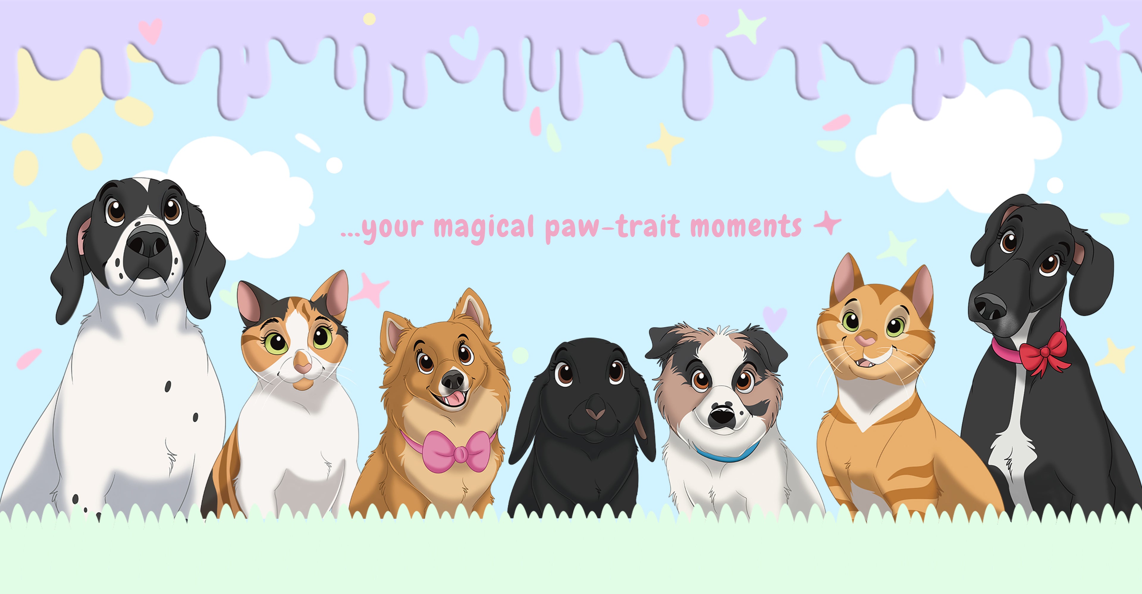 We magically transform your pet photos into enchanting portraits and whimsical cartoon art. Perfect for heartwarming gifts and extraordinary home decor. Discover the magic today!
